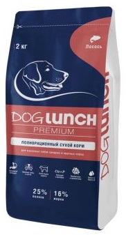 Dog Lunch PREMIUM корм для взрослых собак Средних и Крупных пород (Лосось)